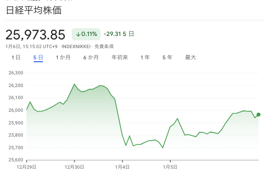 (拉麺断食之弐阡肆陌玖拾)2023年1月2日週の日経平均株価終値は2万5973円85銭.日本市場は米雇用統計の結果を控えて膠着相場.取引終了後の米雇用統計の結果受けて米国市場は景気後退の足音から株高.